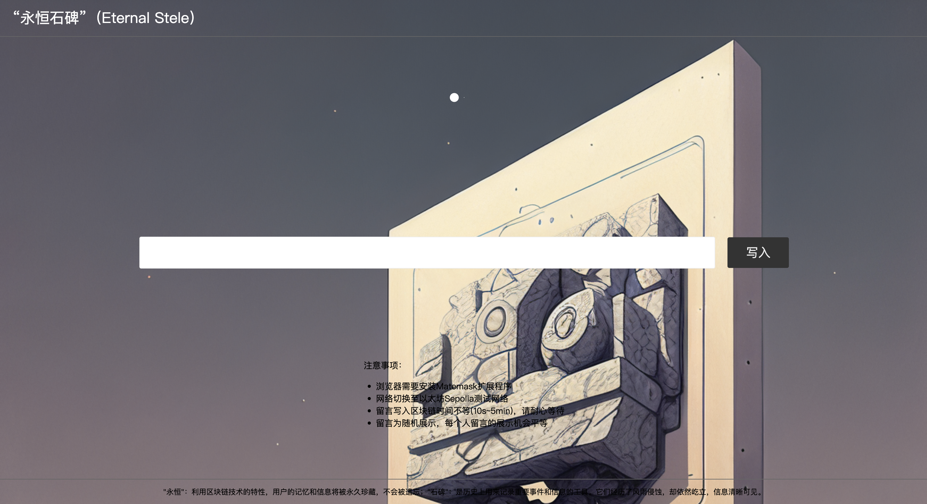 借助区块链技术的不可篡改特性,每一条留言都如同刻在数字石碑上的文字,留下永恒印记。