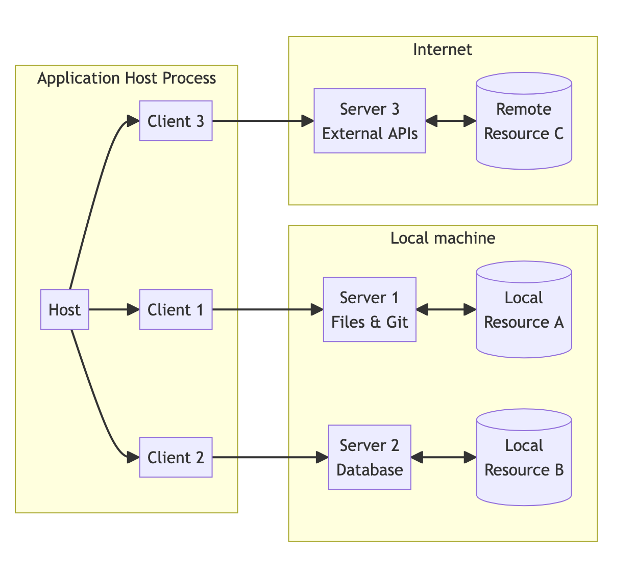 - MCP Hosts:运行MCP的主应用程序,例如Claude Desktop、Cursor或AI Agent,负责通过MCP访问外部数据。