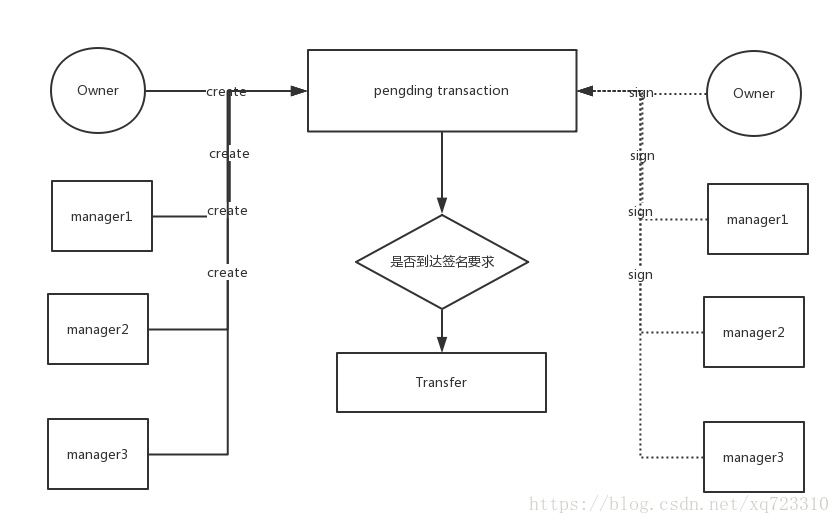 - 待收齐签名之后,方可执行这笔交易。
